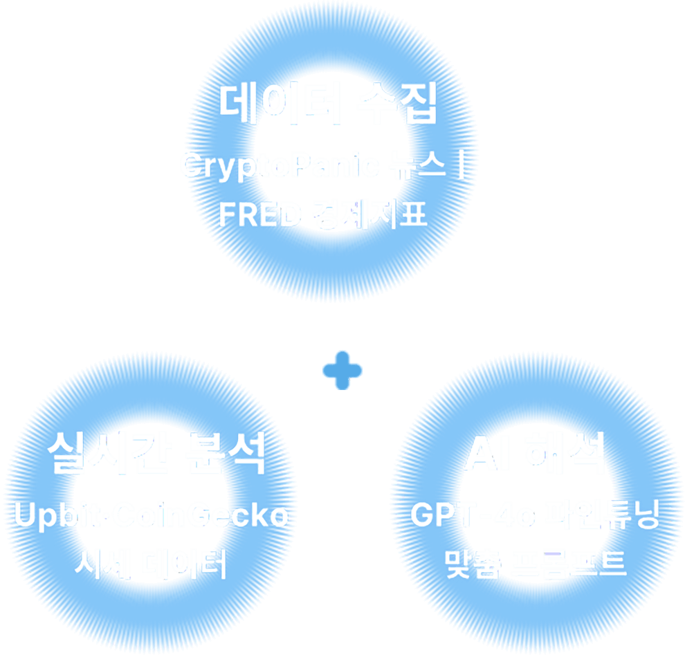 실시간 데이터 파이프라인을 결합한 크립토 시장 해석 특화 AI 플랫폼입니다.
